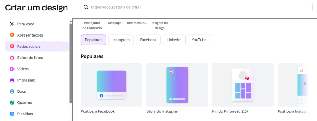 O Canva exibirá dezenas de modelos prontos, gratuitos e profissionais.