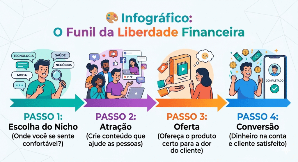 Muitas pessoas leem sobre marketing digital, mas poucas sabem o passo a passo exato para transformar cliques em depósitos na conta bancária. Se você quer sair da teoria e ir direto para o que coloca dinheiro no bolso, você precisa de um método validado.